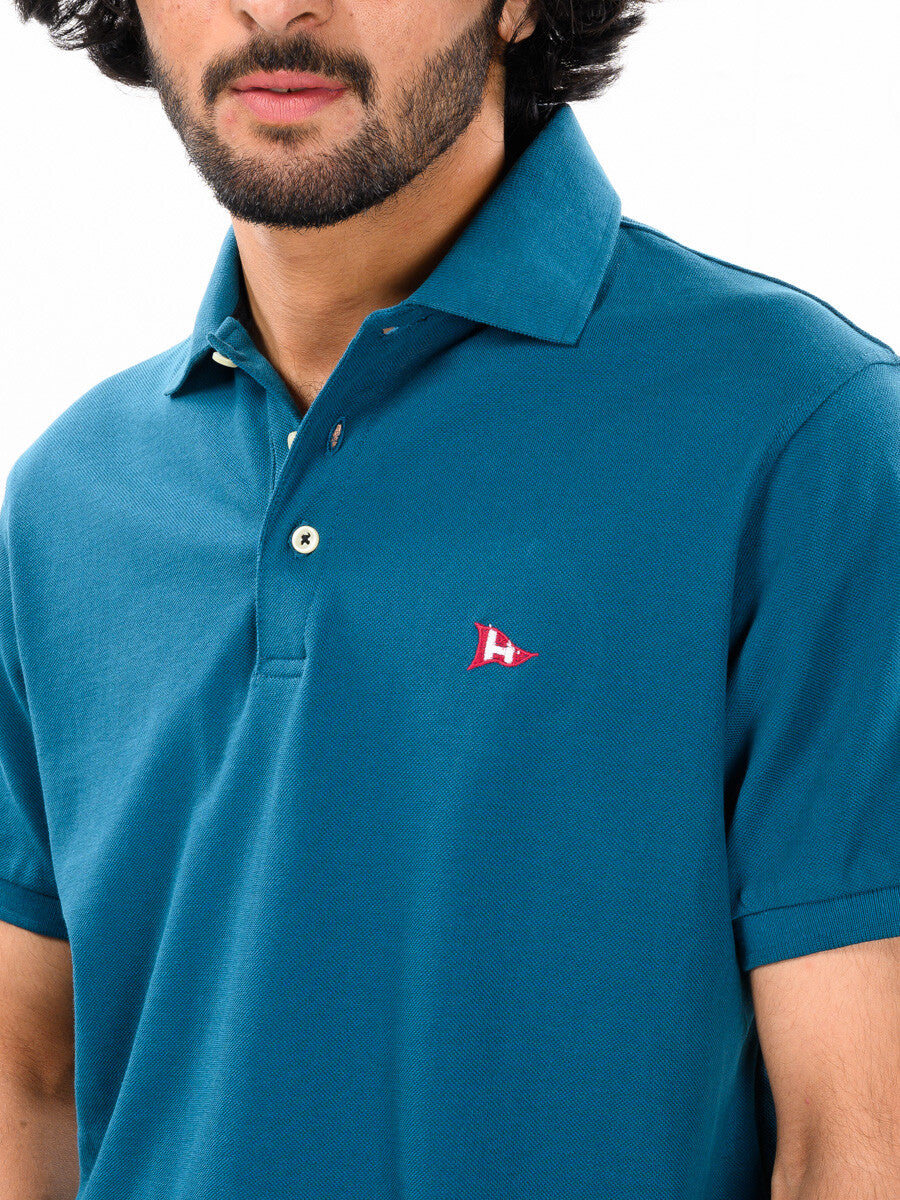 Men's Teal Iconic Mesh Regular Fit Short Sleeve Polo Shirt